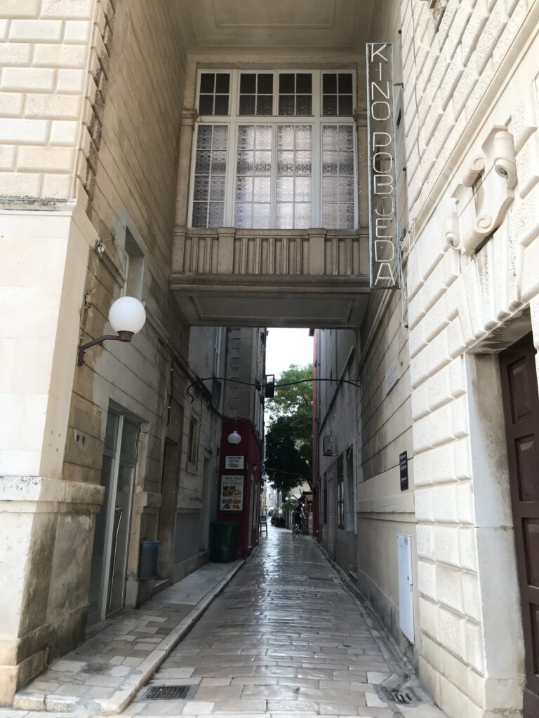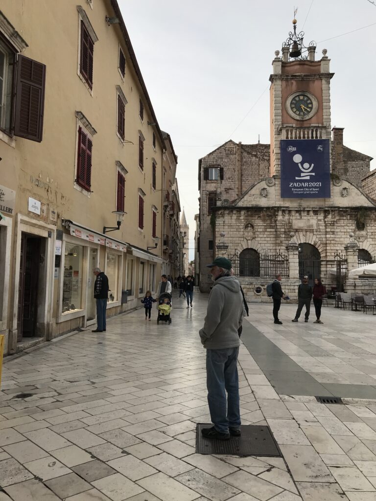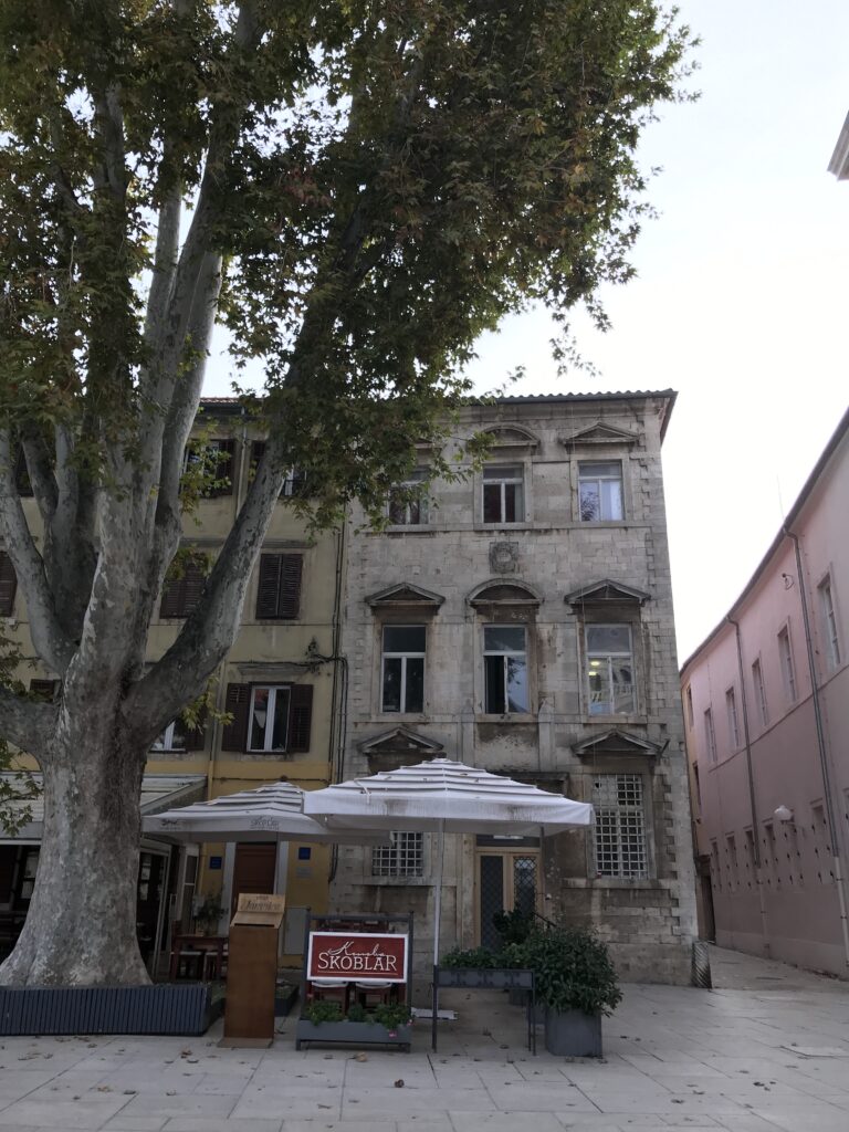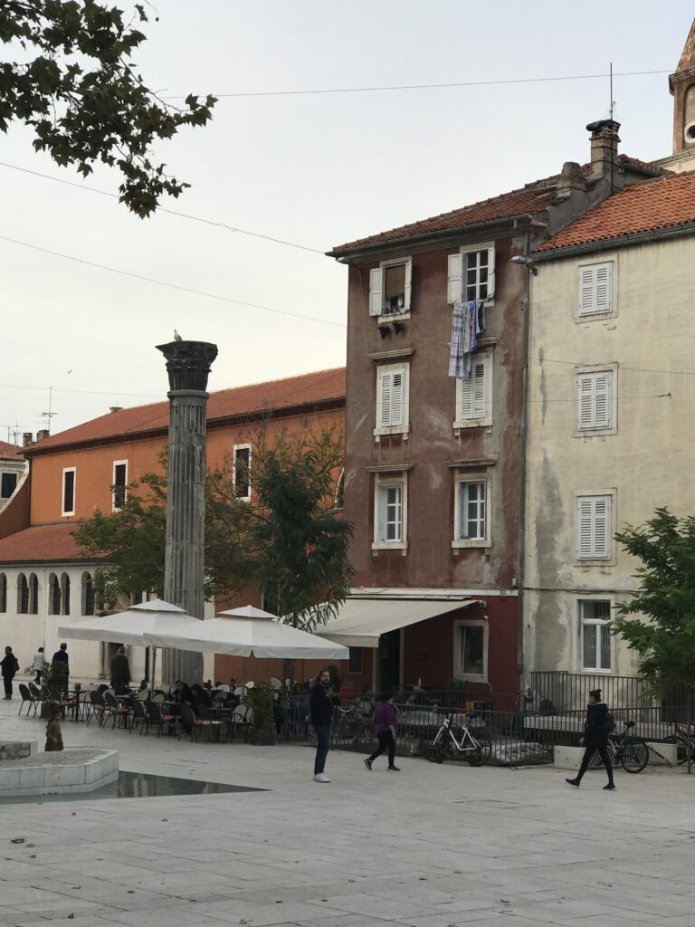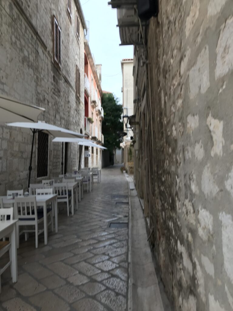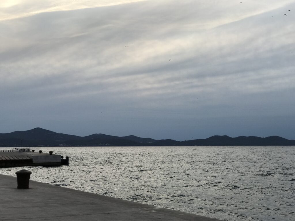 Zu Beginn unserer Fahrt heute war es wieder ganz schön kalt. Als sich der Nebel verzogen hatte aber Sonne pur bis kurz vor Zadar, allerdings meist 7-9 Grad. Als es dann kurz vor der Küste bergab ging, wurde es wärmer, aber es war auch bewölkt, nur manchmal blickte die Sonne durch, aber es hatte 18 Grad. In den Gassen zog es allerdings ganz schön und klar am Meer ist auch ein bisschen Wind, so dass wir am Abend schon unsere dicken Jacken brauchten.
