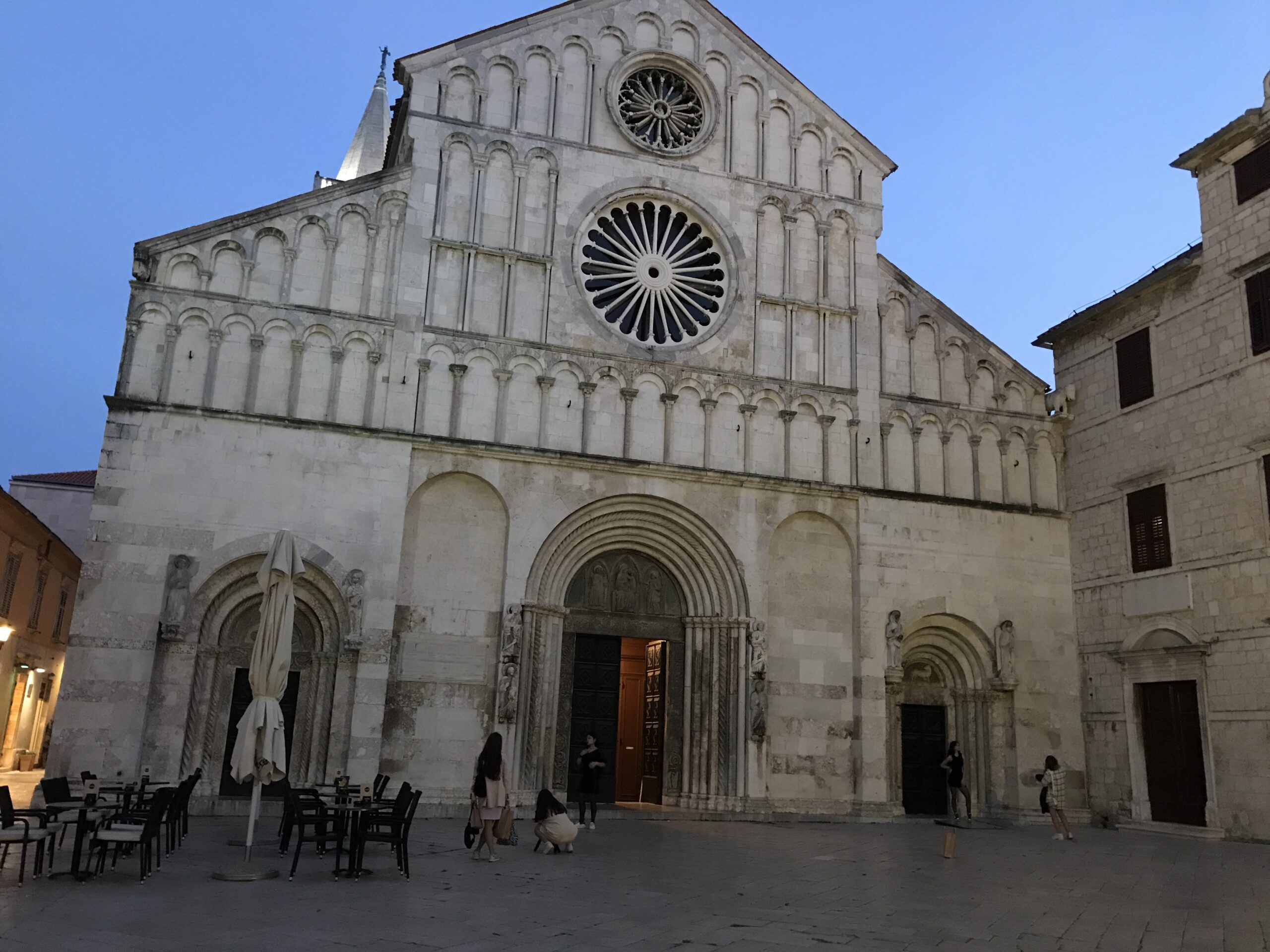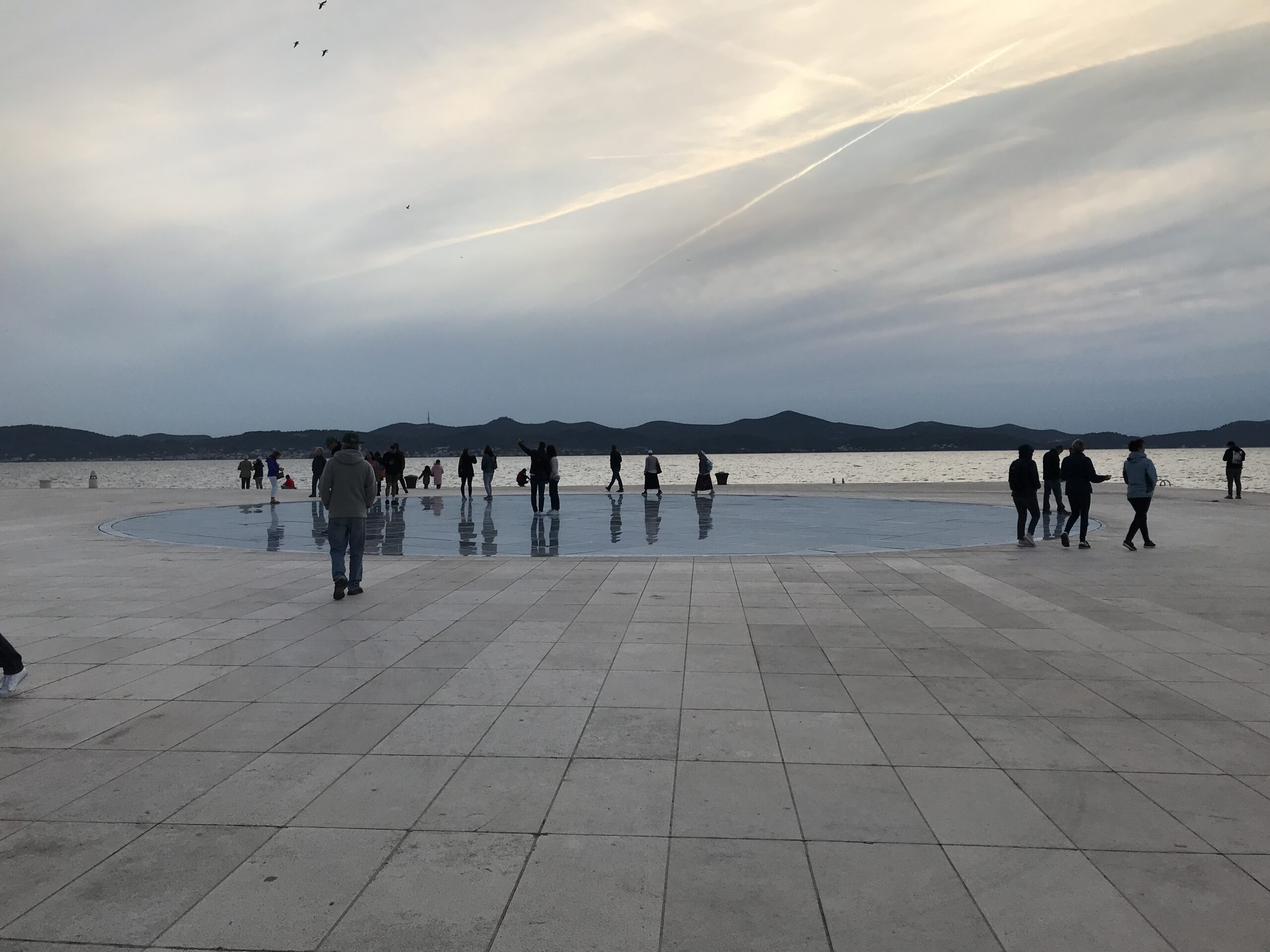 Im ersten Anlauf hat es uns gar nicht so gut gefallen, wir waren eher ein bisschen enttäuscht. In der Altstadt gibt es doch sehr viele Häuser aus der Nachkriegszeit, die in einem sehr desolatem Zustand sind, dazwischen ein paar schöne alte venezianische Gebäude und einige römische Überbleibsel. Im zweiten Anlauf, nachdem wir unser Zimmer bezogen hatten, gingen wir nochmal los und dann konnten wir uns doch noch mit Zadar versöhnen, es hat uns gut gefallen. Vor allem als es dunkel war, war eine schöne Stimmung und Atmosphäre, die kleinen Gassen kamen dann ganz anders rüber und der Bummel machte richtig Spaß. Sehr schön war der Spaziergang auf der Mauer (sie ist ja UNESCO- Weltkulturerbe), hier haben sie schöne Spazierwege angelegt, es gibt schöne alte Bäume und gute Aussichten. Vorbei kamen wir dann auch bei der Meeresorgel, es sind komische Töne, die das Meer hier verursacht, aber der Platz ist sehr schön, auch mit der aus 300 Einzelteilen bestehenden Glasscheibe mit 22m Durchmesser, es befinden sich darunter Solarmodule, der Strom wird eingespeist – man nennt das Ganze „Sonnenanbetung“.