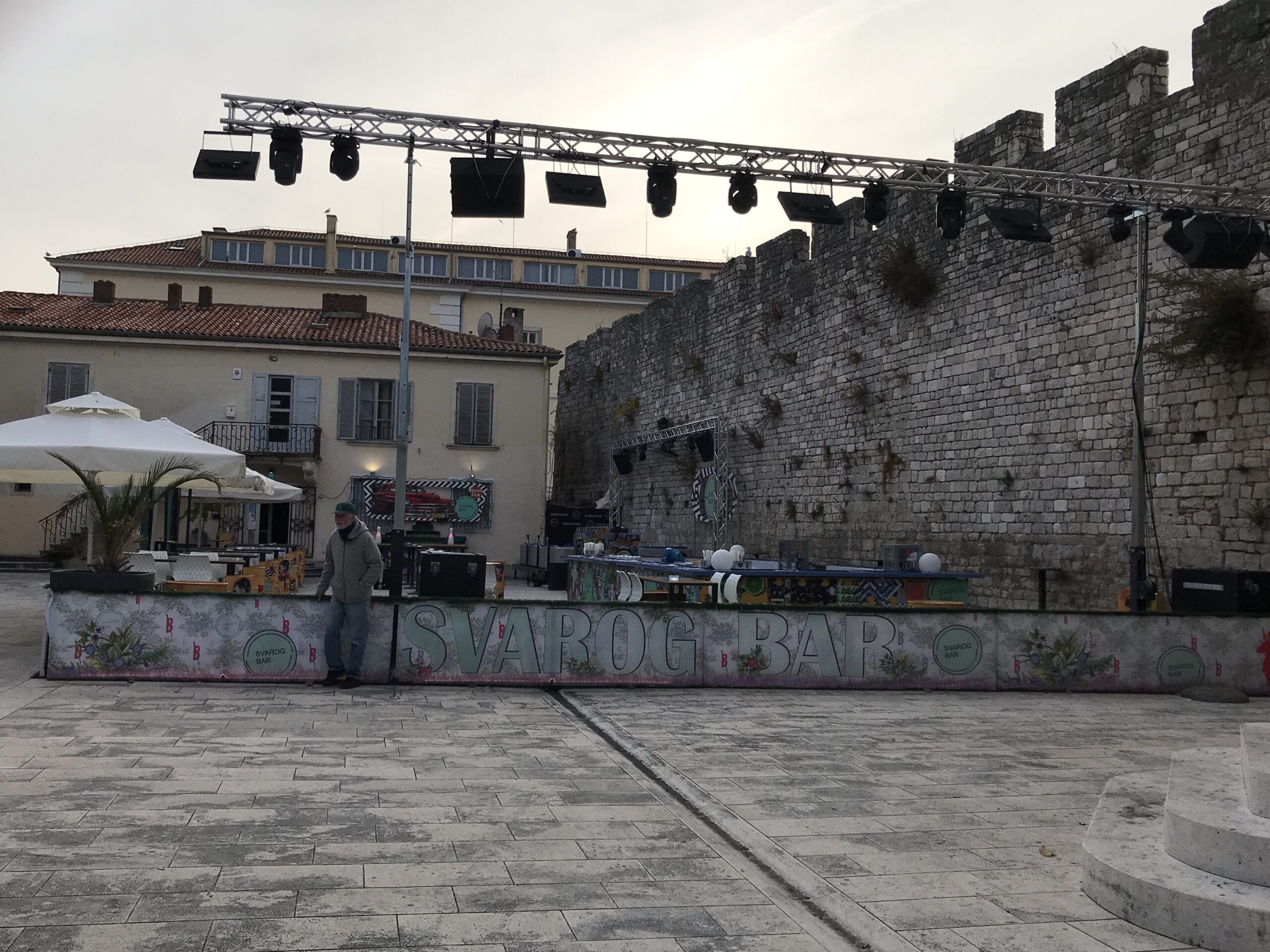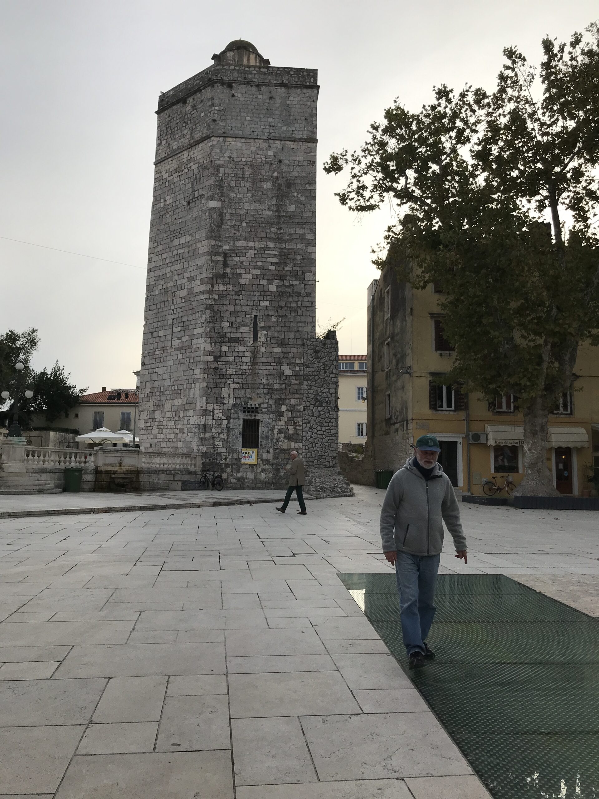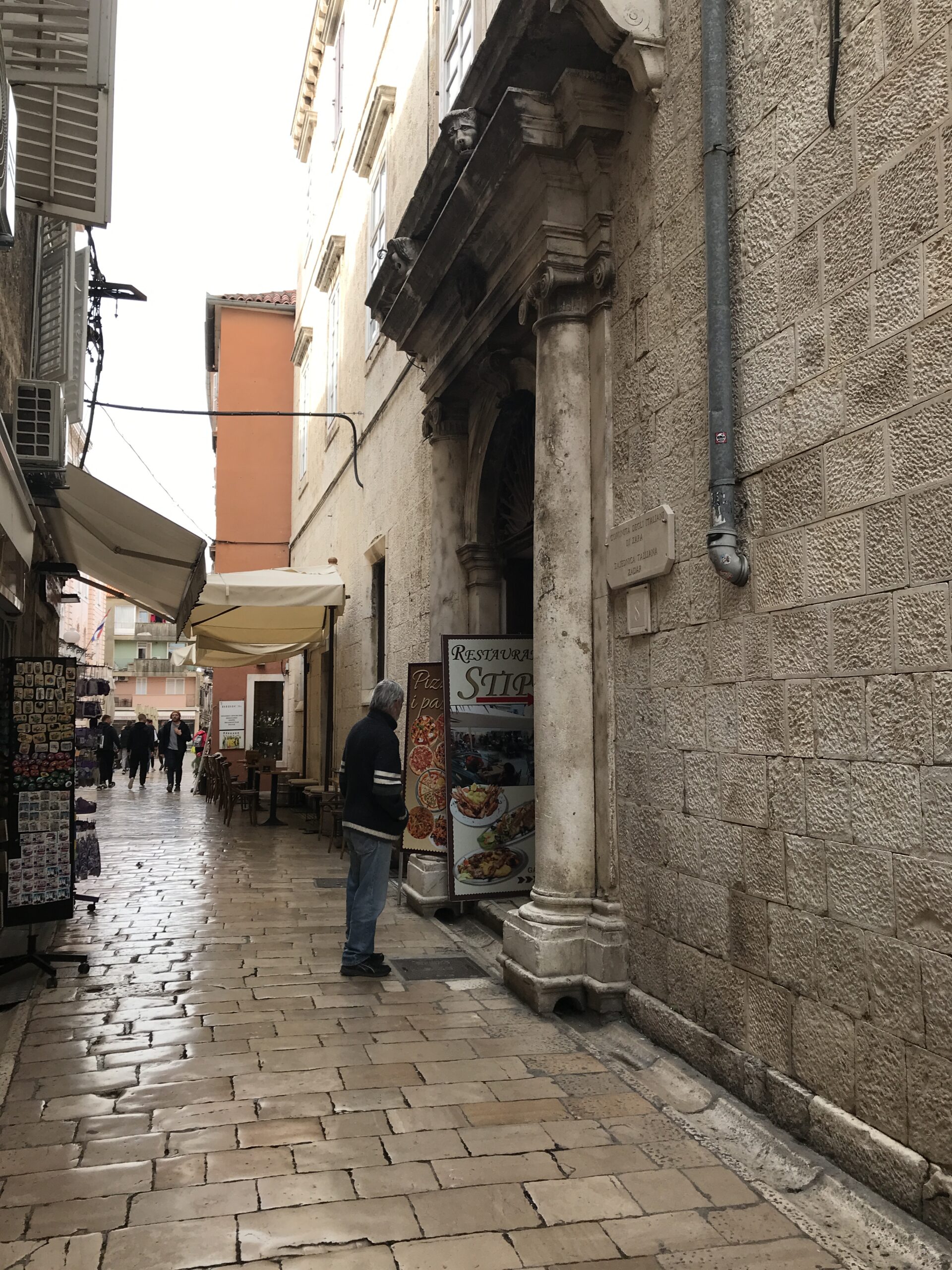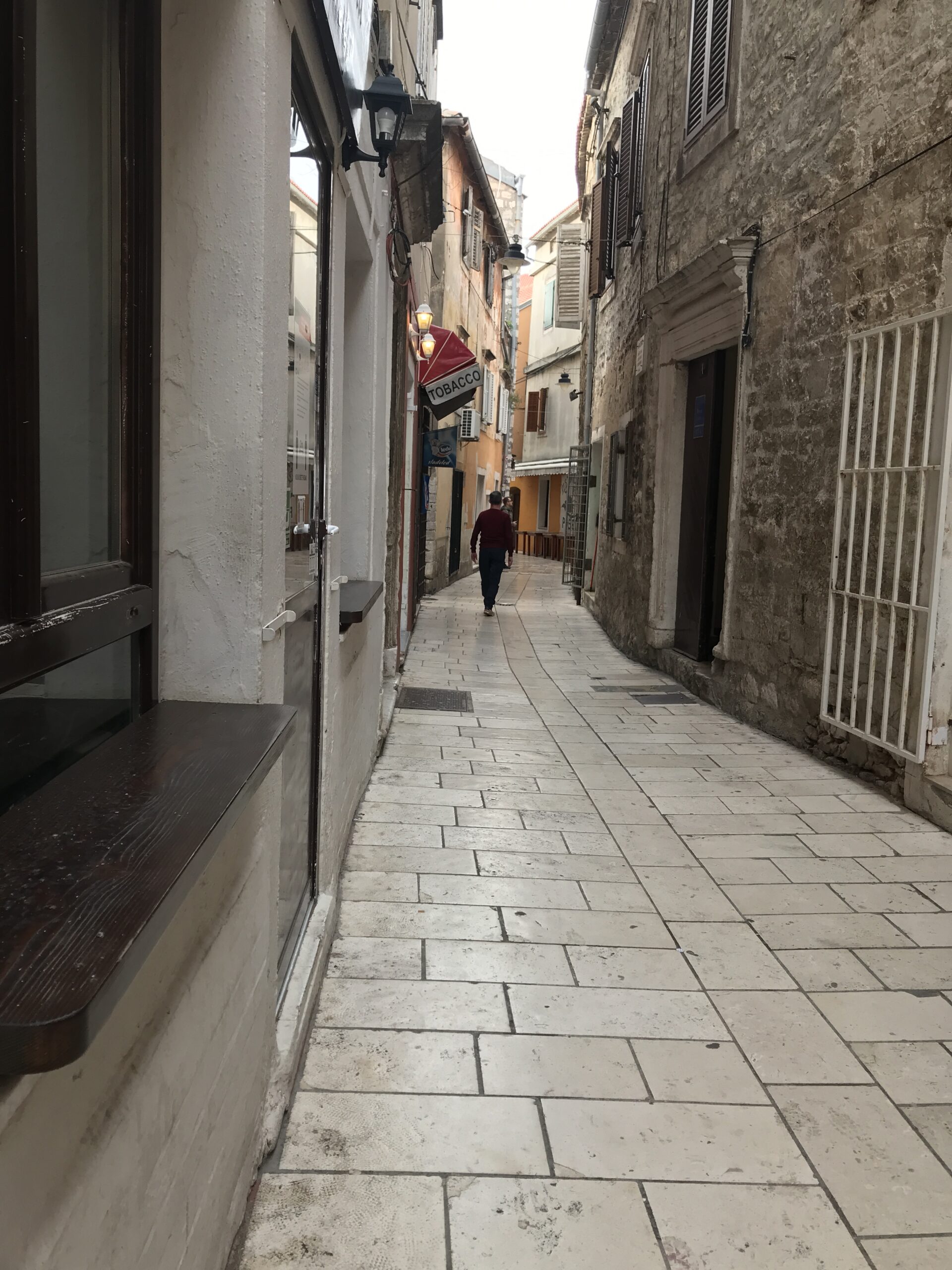 Zu Beginn unserer Fahrt heute war es wieder ganz schön kalt. Als sich der Nebel verzogen hatte aber Sonne pur bis kurz vor Zadar, allerdings meist 7-9 Grad. Als es dann kurz vor der Küste bergab ging, wurde es wärmer, aber es war auch bewölkt, nur manchmal blickte die Sonne durch, aber es hatte 18 Grad. In den Gassen zog es allerdings ganz schön und klar am Meer ist auch ein bisschen Wind, so dass wir am Abend schon unsere dicken Jacken brauchten.
