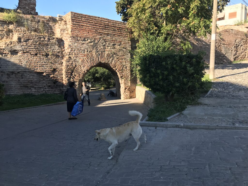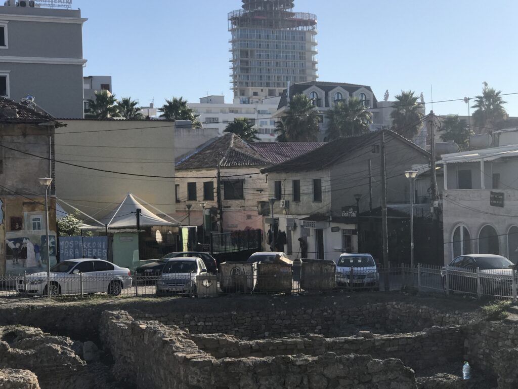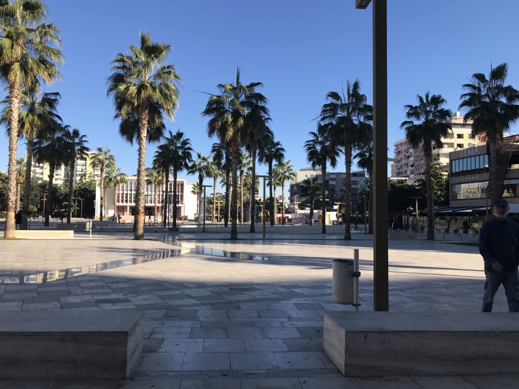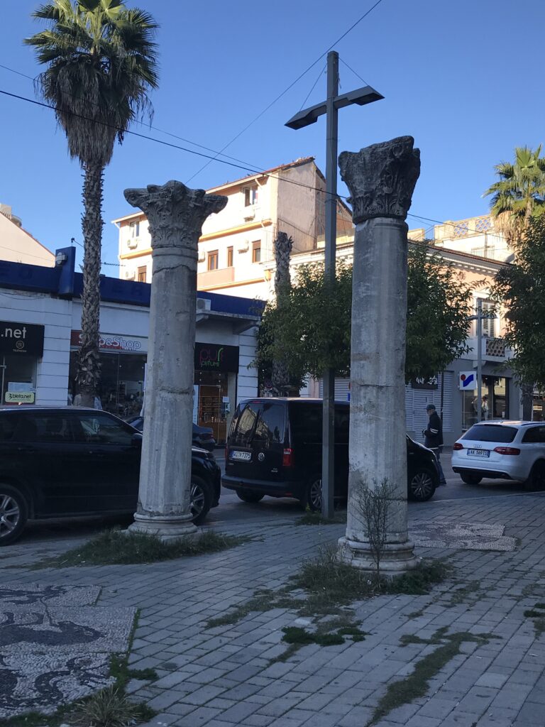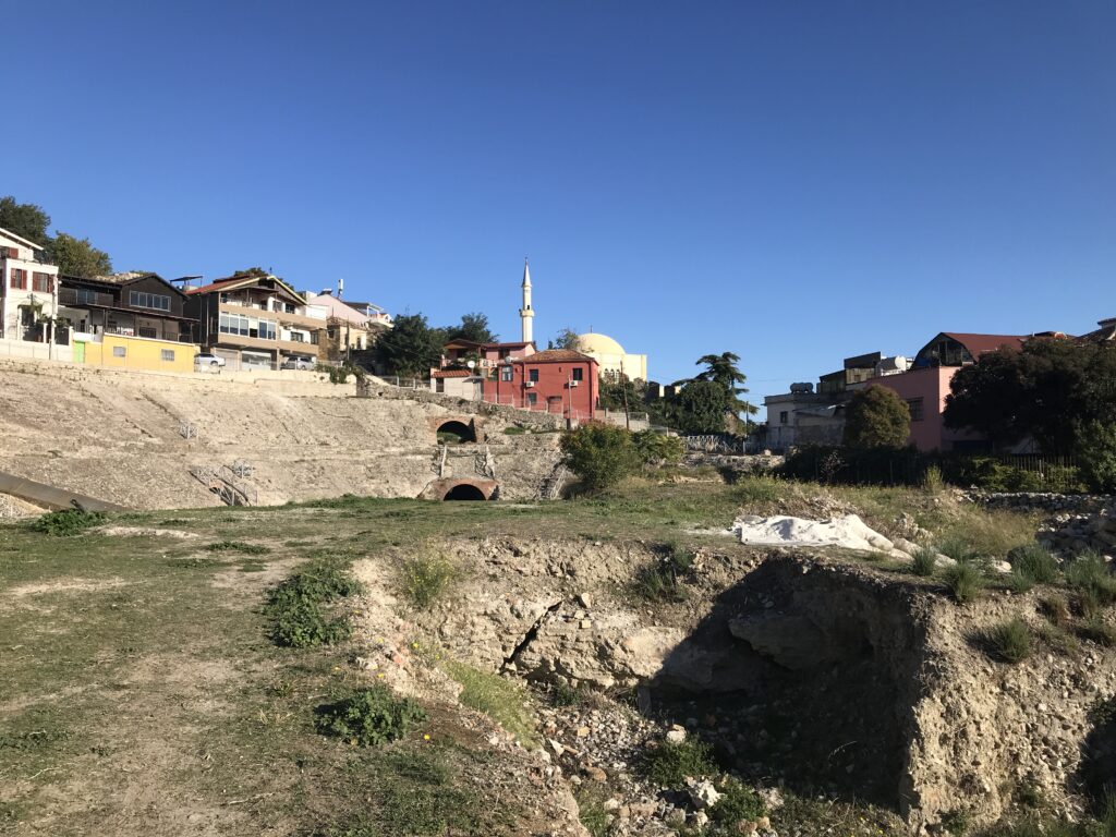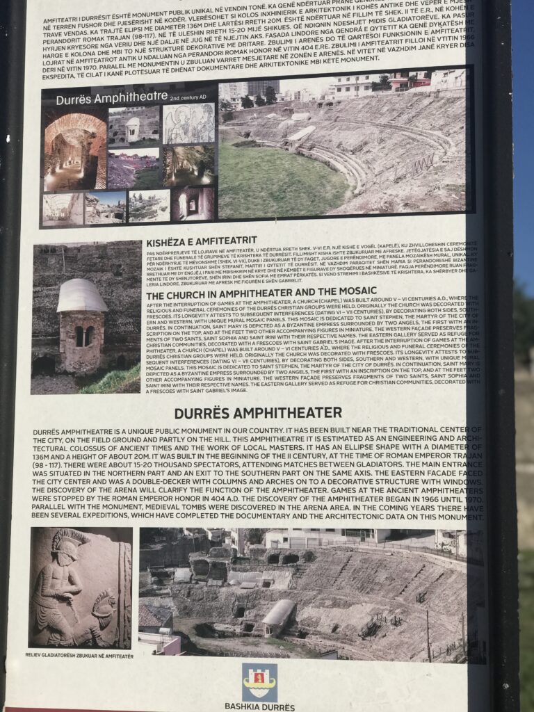 Am nächsten Morgen besuchten wir noch das Amphitheater und bummelten ein bisschen durch die Straßen. Den Strand wollten wir gar nicht sehen, im Reiseführer hatte ich schon Bilder mit seinen dicht bebauten Hochhäusern gesehen, diese säumten auch die Straßen der Strandpromenade, die wir am Abend entlang gelaufen sind auf der Suche nach einem Geldautomaten. In der Stadt dann noch ein riesiges Schild mit Werbung für den Durres-Strand, aber wir wollten nach unseren Einblicken nichts wie weg. Durres selbst war vor allem am Abend und am nächsten Tag ein einziges Verkehrschaos. Alle auf der Suche nach einem Parkplatz, alle fahren kreuz und quer und die Dichte an Mercedes SUV hatte noch einmal zugenommen. Nein, es waren nicht ein paar Reiche, es waren sehr sehr viele. Neben der riesigen Moschee, der Fußgängerzone mit glänzendem Marmorbelag und der einen Prachtstraße, sahen wir in den Gassen viele ganz arme Behausungen, Bettler, sehr viel Müll und überall streunende große Hunde – ein Kontrast und ein Anblick, der uns überhaupt nicht gefiel. Dieses ehemals sozialistische Vorzeigeland geht einen für uns nicht vorstellbaren Weg in einen extremen Kapitalismus – mit so wie wir das wahrnahmen – mit nicht vorhandener sozialen Komponente. Eine schlimme Entwicklung fanden wir. Für uns als Durchreisende, die sicherlich nicht die schönen Berglandschaften, die albanische Riviera und tolle Strände gesehen haben ist Albanien sicherlich kein Geheimtipp, so wie es oft in den Reiseführern steht.