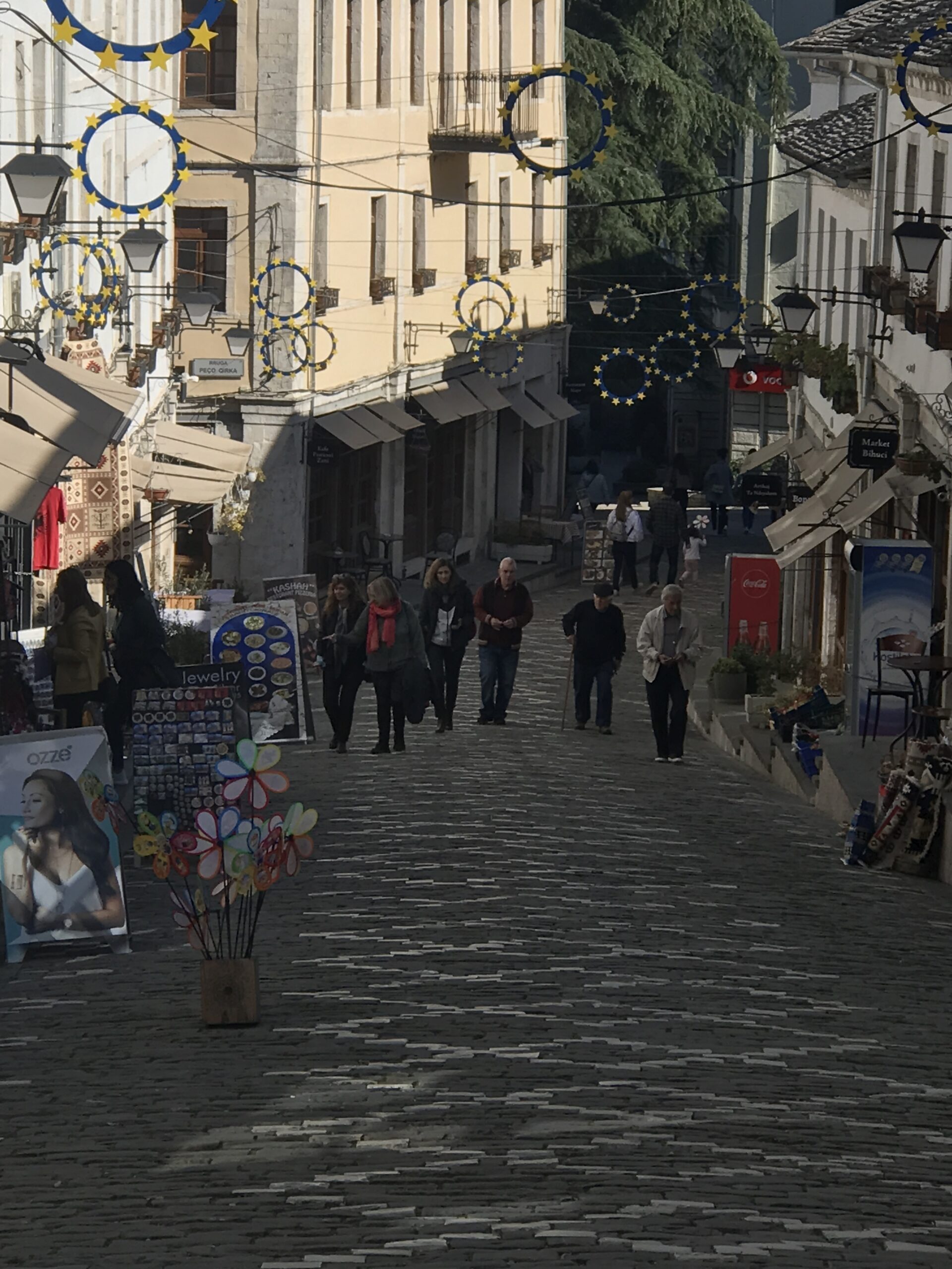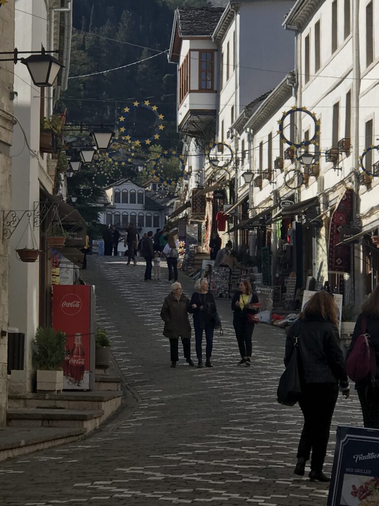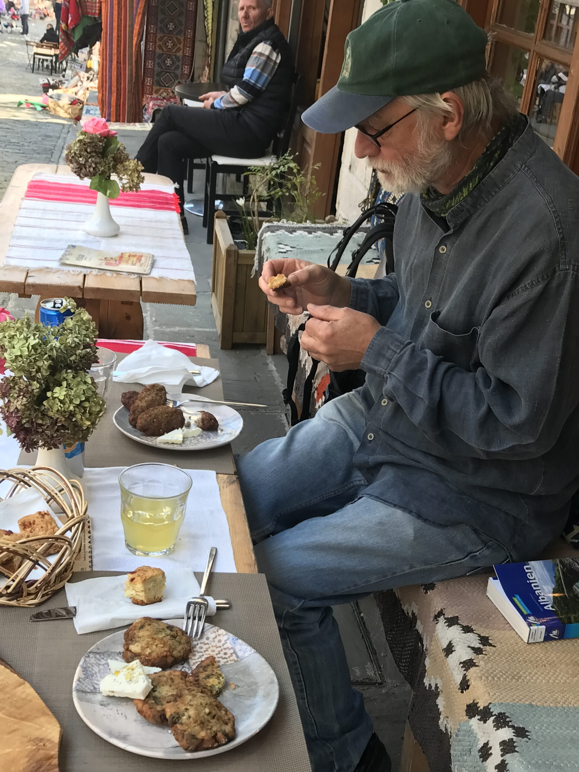 Hier bekamen wir jetzt einen angenehmen Eindruck von Albanien. Man begegnete dort in der Altstadt, die sehr touristisch geprägt ist, ganz „normalen“ Leuten, keinen besonders Betuchten, aber auch keinen besonders Armen. Wir sind mal durch die Stadt gebummelt und haben unser letztes albanisches Geld gezählt, denn das meiste hatten wir gerade verzankt, denn auch der Sprit ist viel günstiger als in Griechenland.