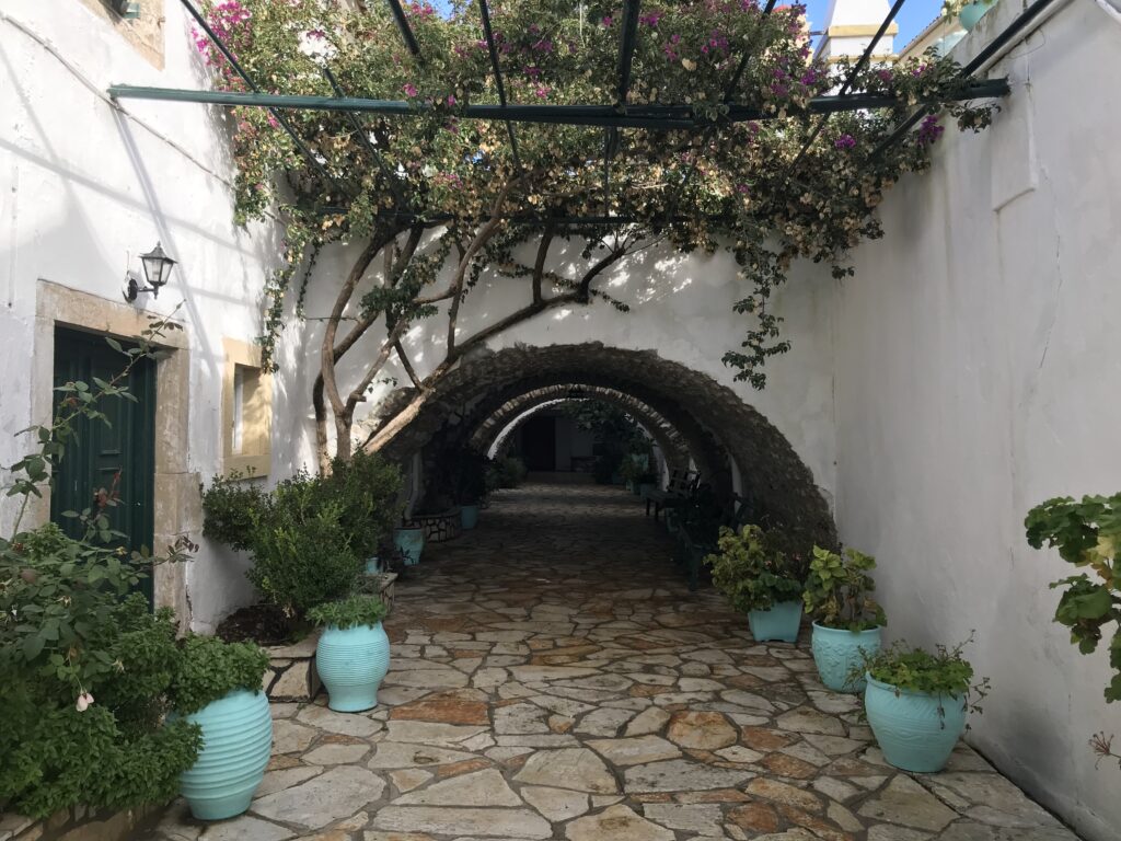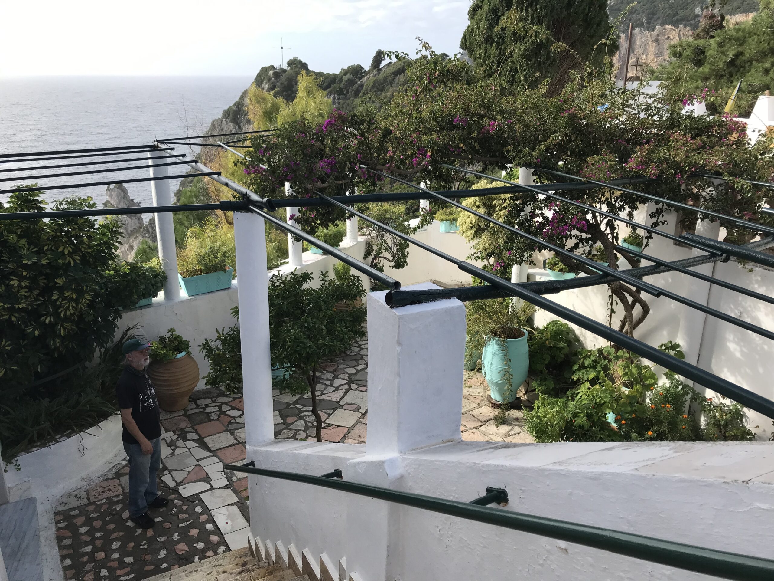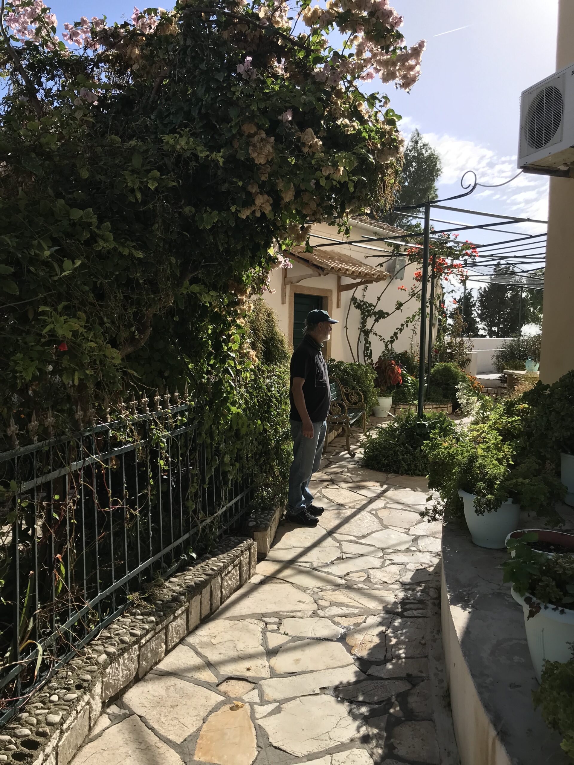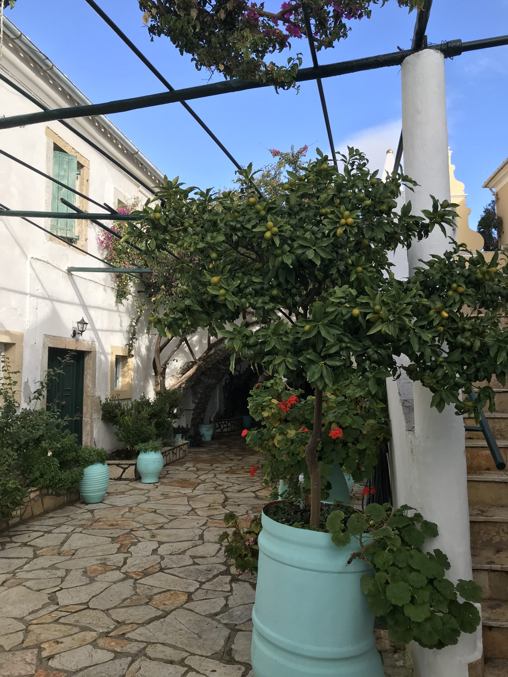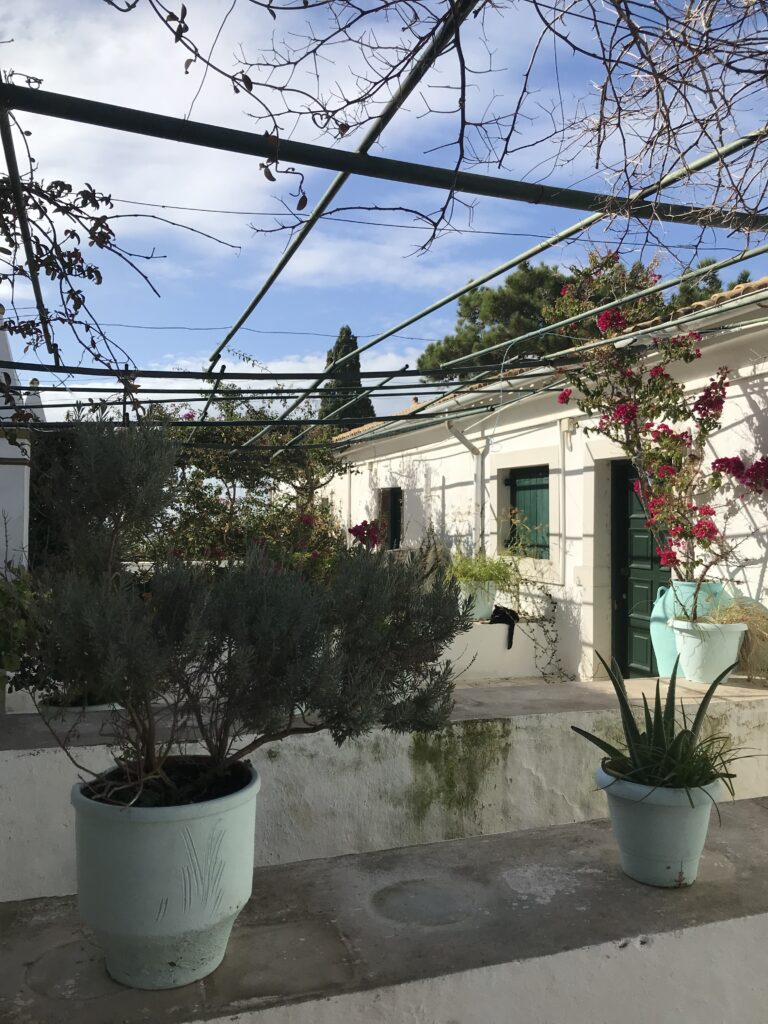 Sehr neugierig waren wir auf die Blumenpracht hinter weißen Klostermauern auf dem steilen Bergabhang und wir wurden nicht enttäuscht – die Serpentinen haben sich gelohnt. Laut Reiseführer ohne Zweifel das schönste Konvent auf Korfu.