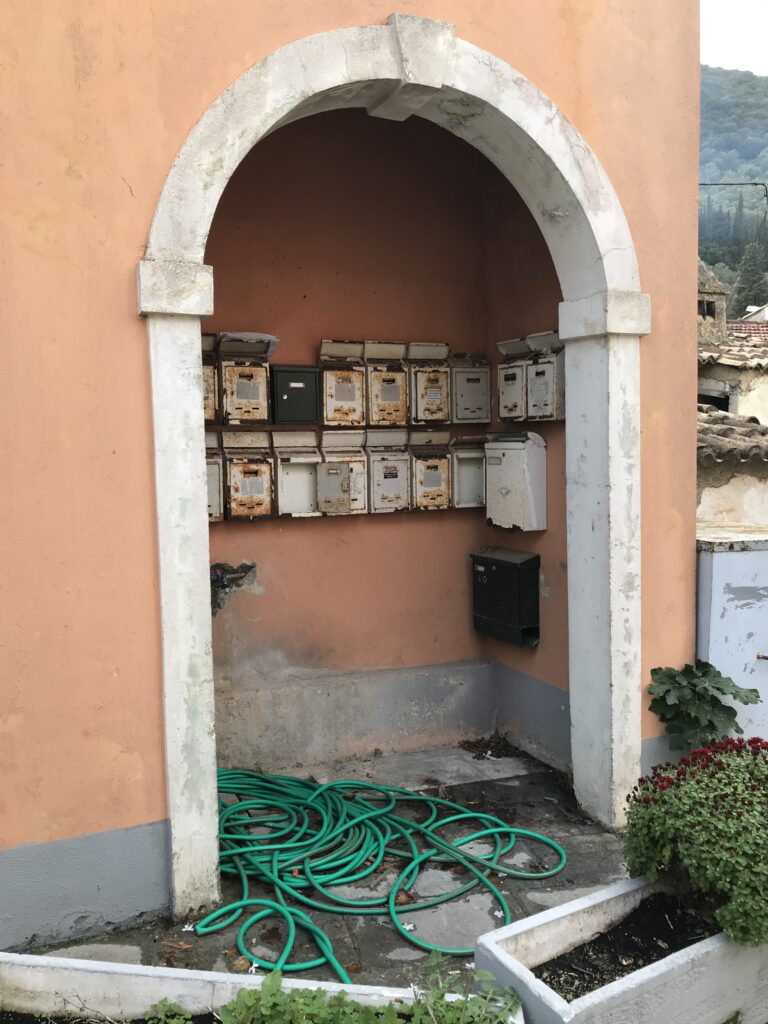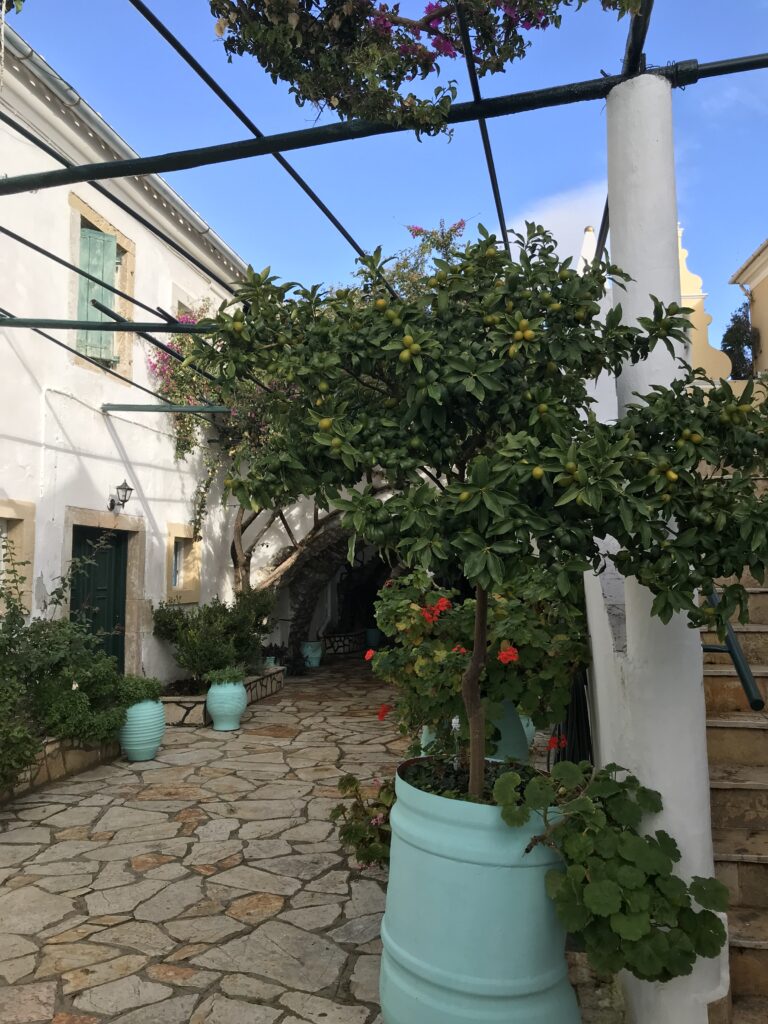 Durch den Ort, der steil am Hang liegt, wieder sehr enge und kurvige Anfahrt, ging es dann zu unserem letzten Ziel auf Korfu.