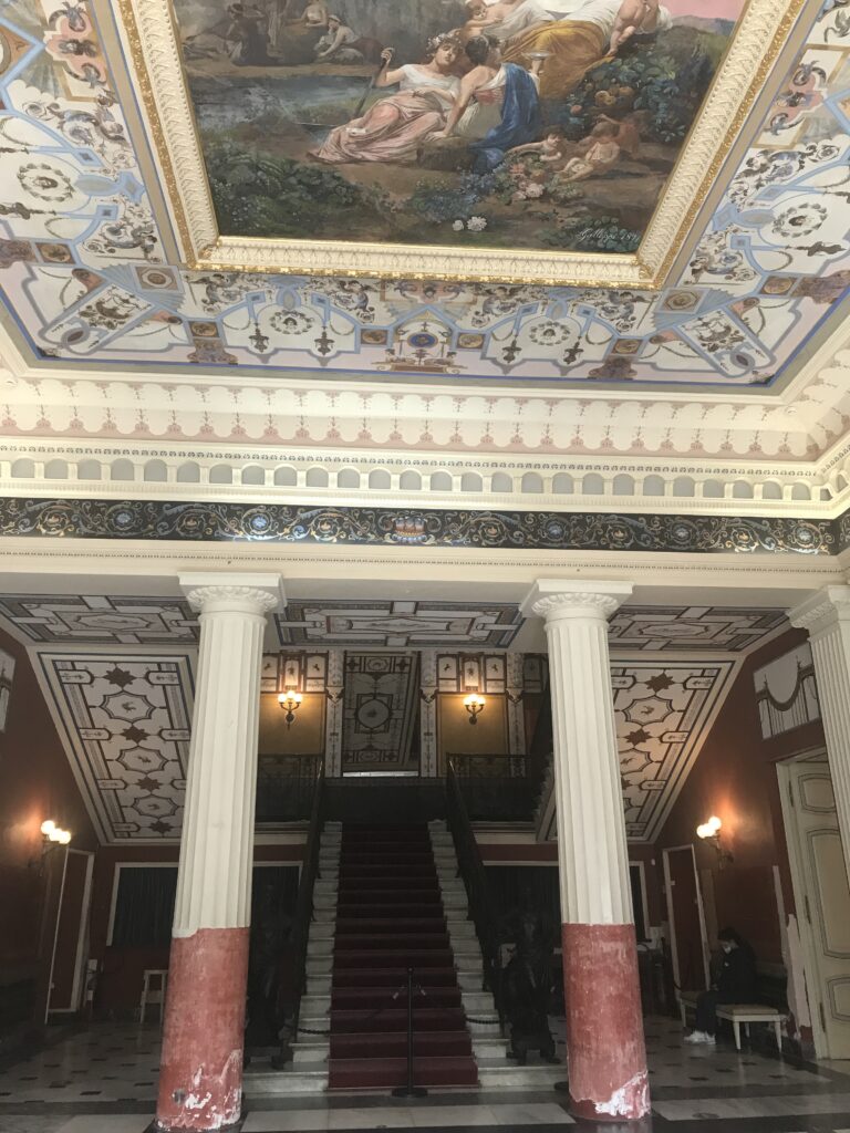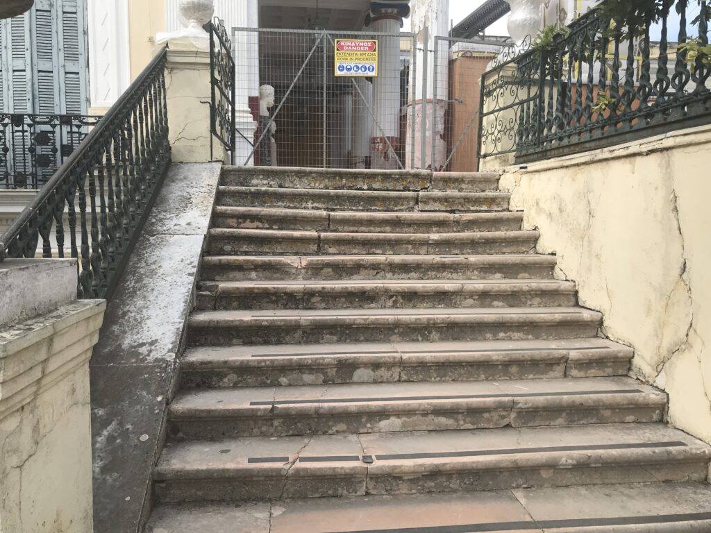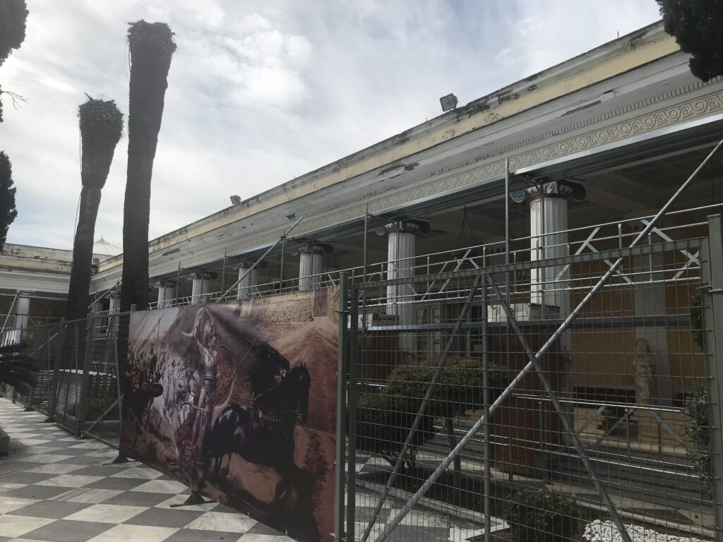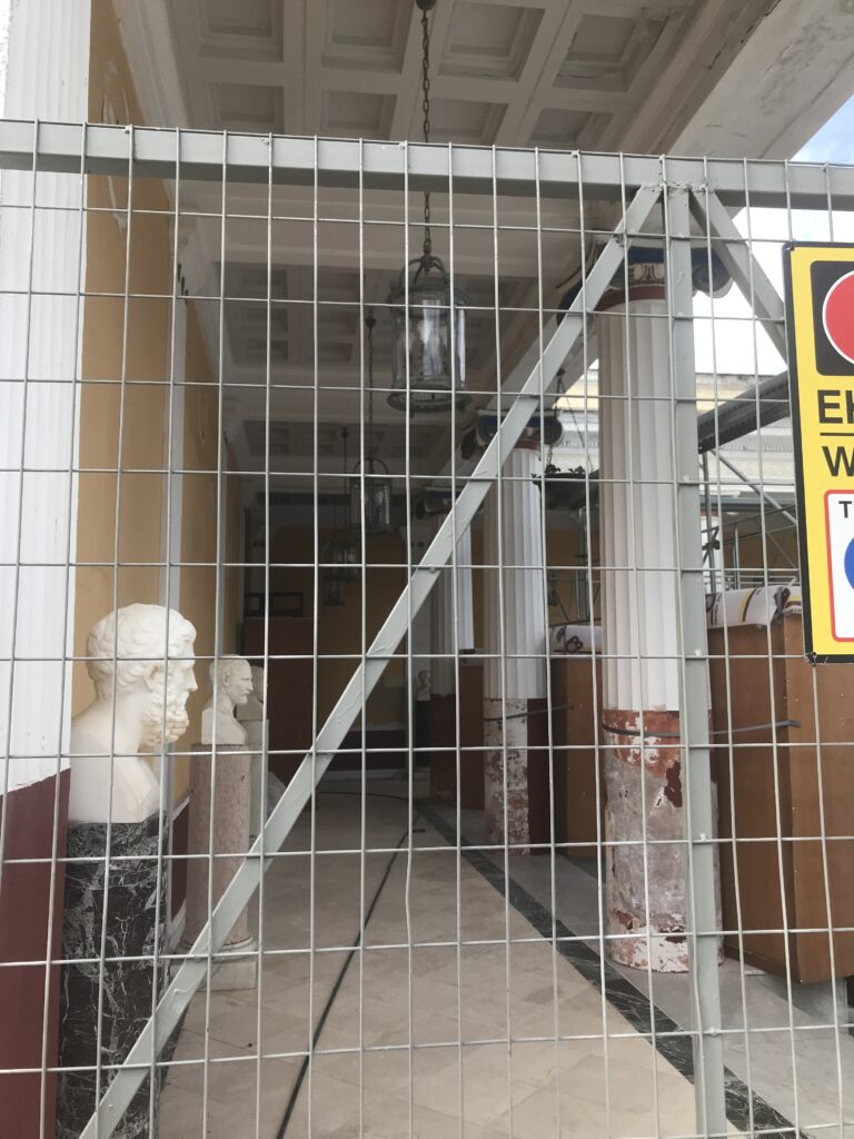 Hier sieht man die Baustelle und auch den Sanierungsbedarf. Eine ganze Galerie mit bedeutenden griechischen Frauen war gesperrt, sie waren nur auf einer Fotowand zu sehen.