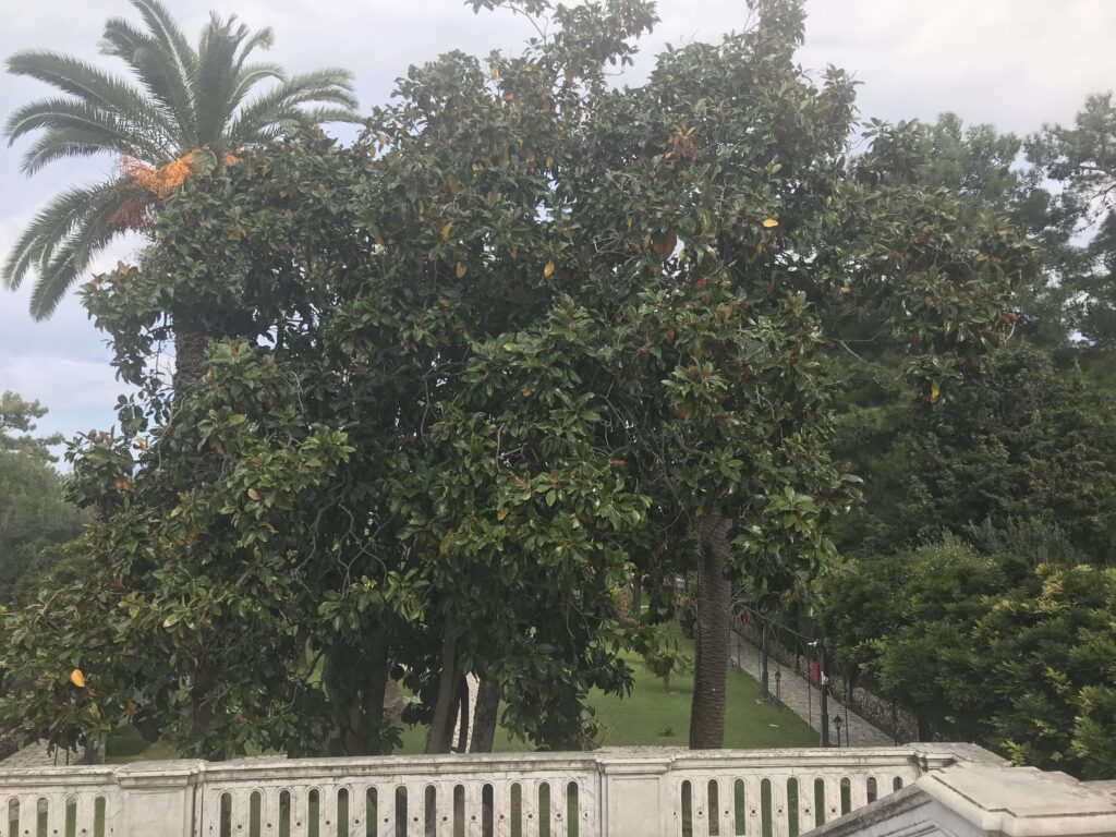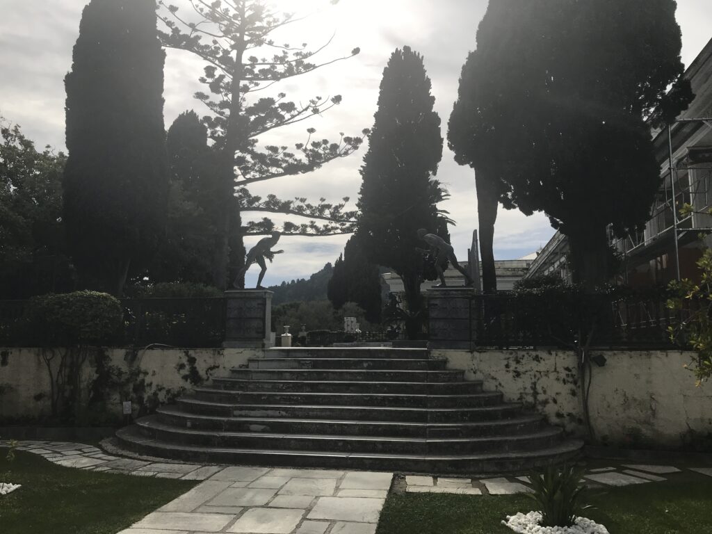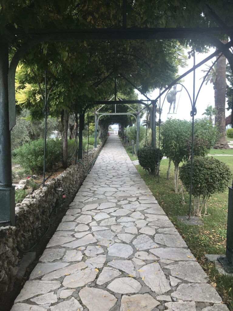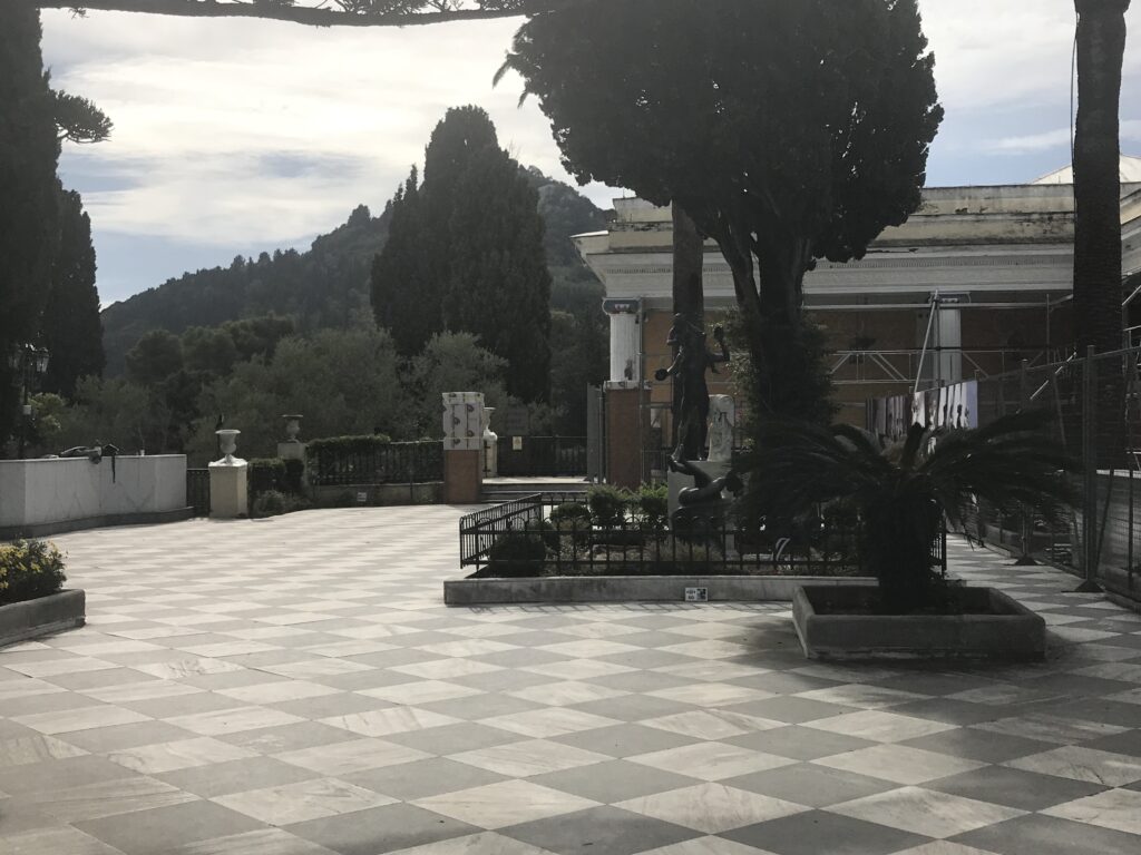 Sie ließ das Schlößchen erbauen, nach ihrer Ermordung kaufte es später der du. Kaiser Wilhelm um hier immer seinen Osterurlaub zu verbringen. Aber das ganze Ensemble ist in sehr schlechtem Zustand, sehr renovierungsbedürftig. Sie eröffneten bereits eine große Baustelle, es war ziemlicher Baulärm. Man konnte also nur das Erdgeschoß und den Garten besichtigen, allerdings für den vollen Preis. Aber wir sahen wirklich, dass sie das Geld dringend brauchen, das war also o.k.. In einem Raum sind Kleider der Maria Callas von ihren Aufführungen aus der ganzen Welt ausgestellt. Ich wußte gar nicht, dass sie Griechin war. Ansonsten ein paar Bilder von Sissi und dem Wilhelm, Schmuck von Sissi und ein paar alte Möbel, ohne besondere Zuordnung von wem sie waren. Irgendwie nichts besonderes.