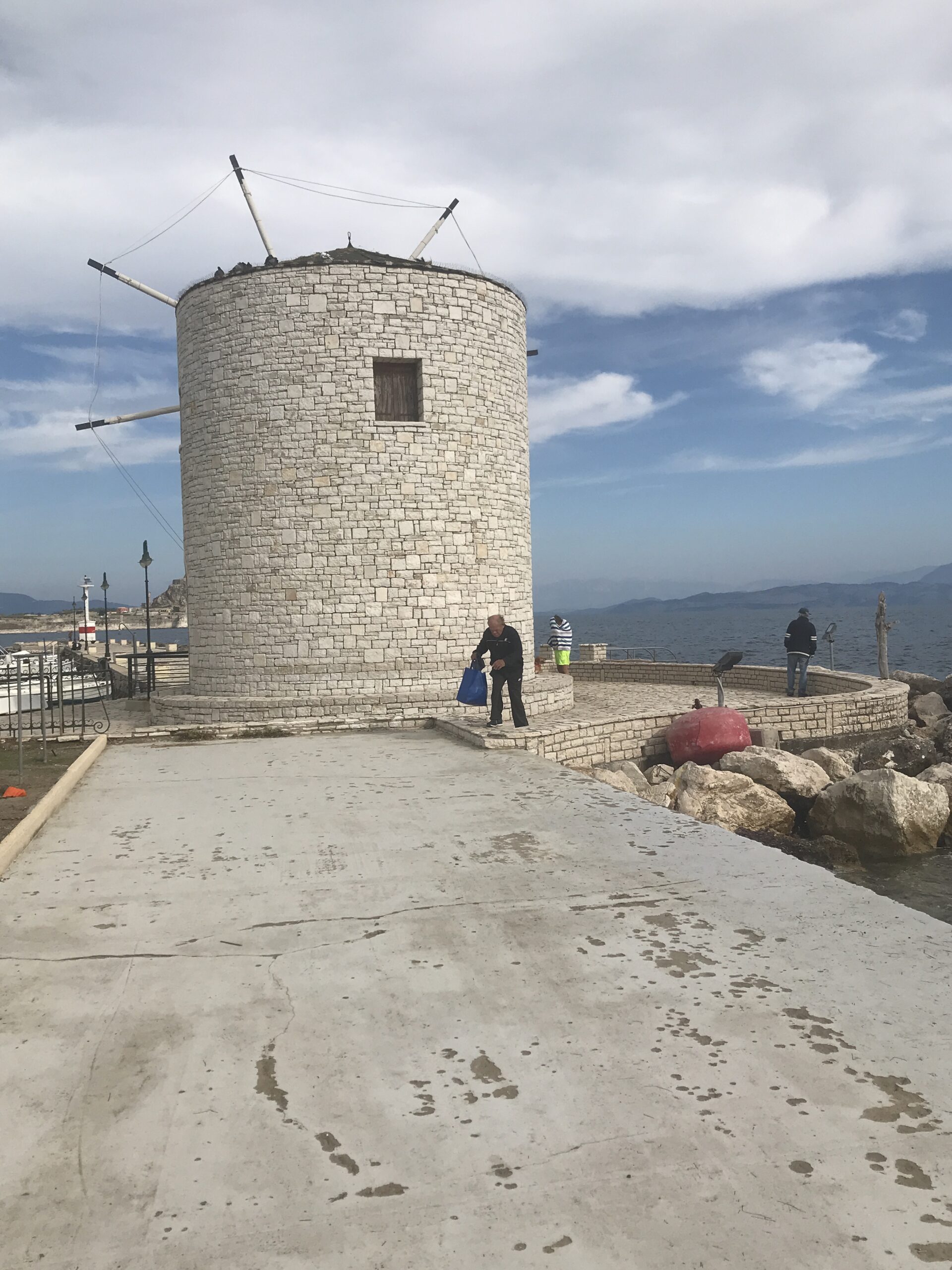 Mit einem weiteren Frühstück in der Sonne, wenn auch nicht ganz so strahlend, aber mit tollem Blick auf das alte Fort ließ sich dieser Feiertag für uns ganz gut beginnen. Neben dem Café noch eine schöne Windmühle, die man weithin, auch aus der Altstadt schön liegen sieht. Daneben eine „Badeanstalt“ und ein kleiner Blick auf die Küste, es waren am frühen Morgen wieder Leute schwimmen. Ein schöner Blick noch der Garten eines schönen kleinen Apartmenthauses,. Ich hatte mir schon gedacht wow, warum haben wir das nicht gefunden, bis ein Flugzeug kam. Zudem waren es doch 5 km von der Altstadt, für einen abendlichen Bummel und Absacker dann doch zu weit. Aber tolle hohe Olander an der Straßenecke haben wir noch bewundert.