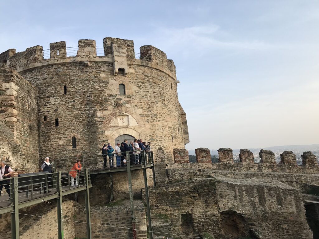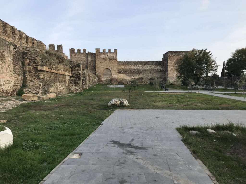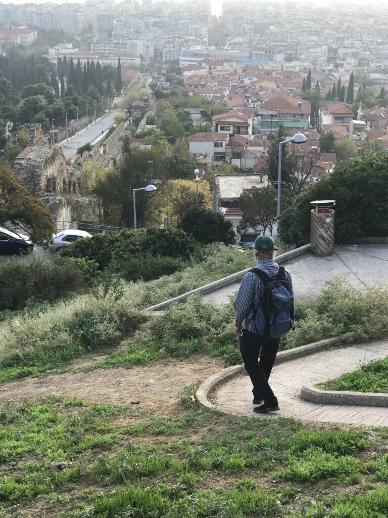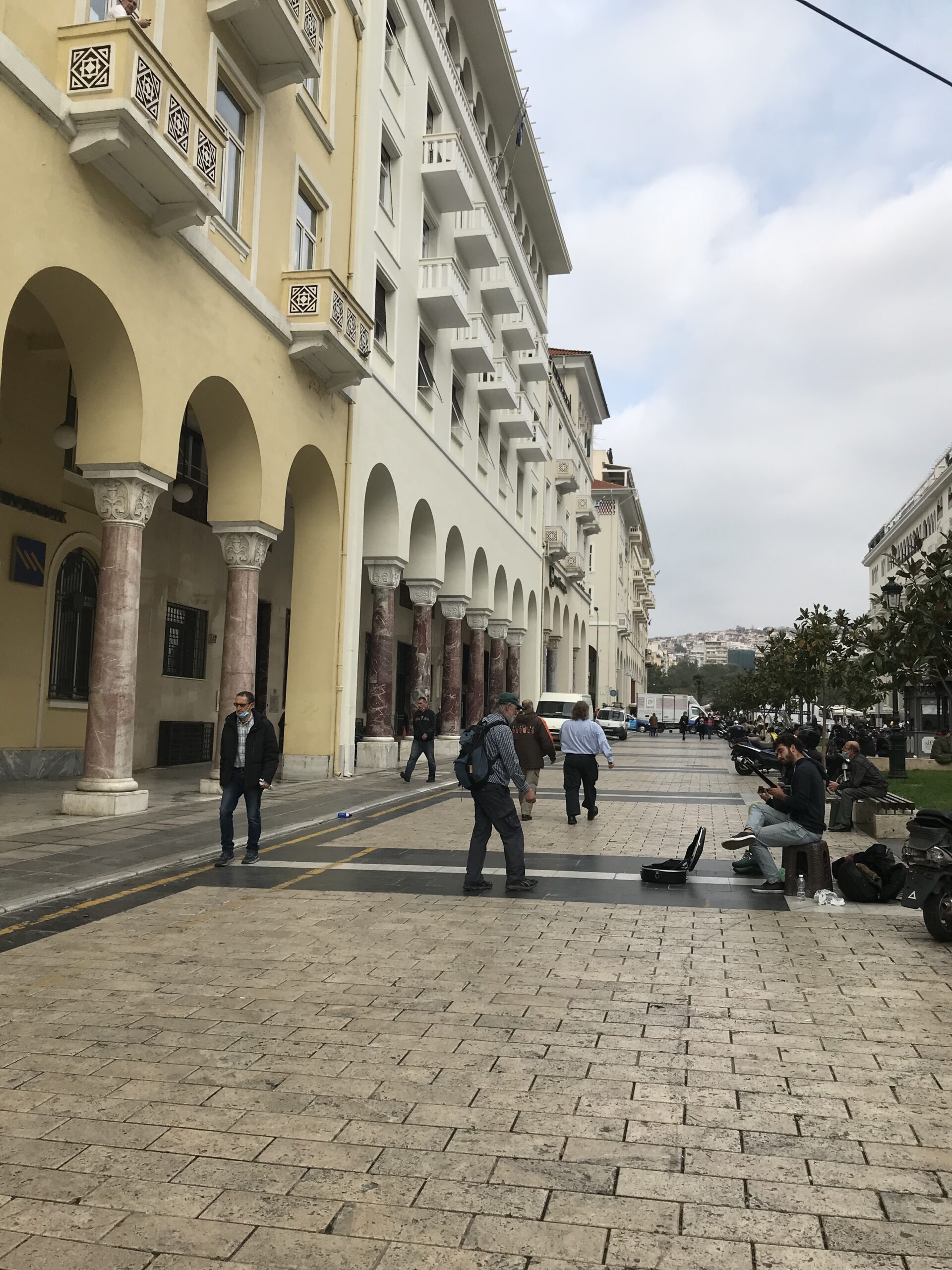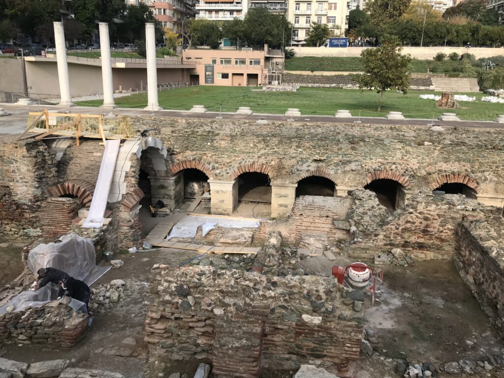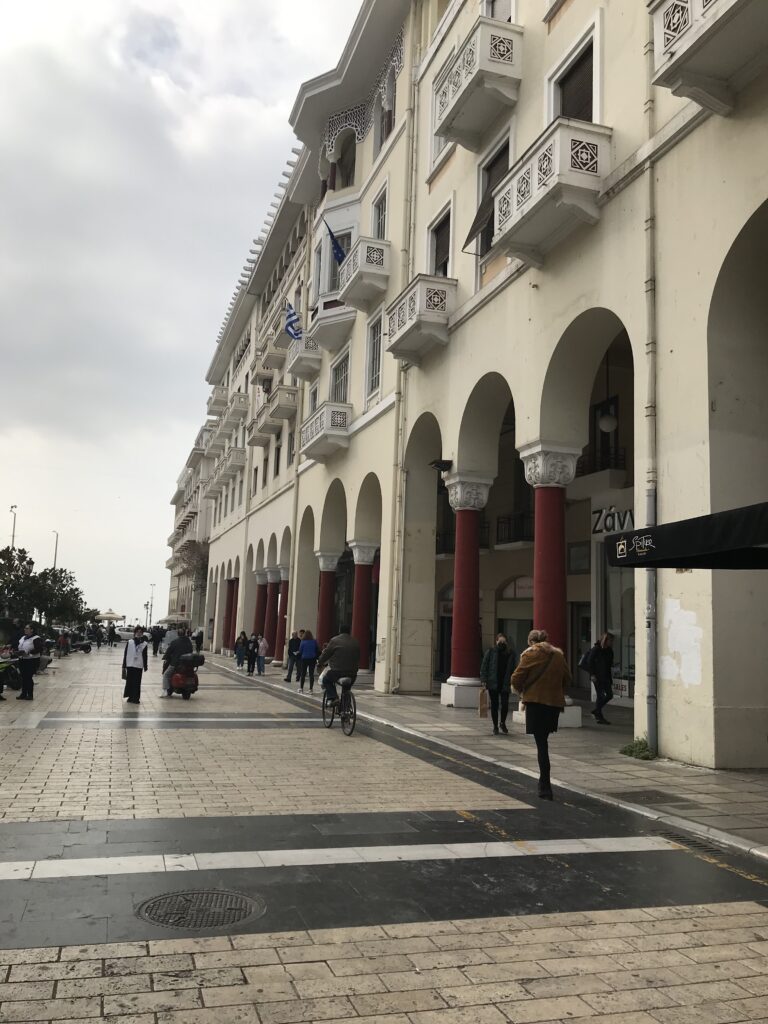 Die Stadt ist ganz anders als Athen. Es gibt so gut wie keine griechischen Altertümer, höchstens mal ein paar Mauerreste. Es gibt ein römisches Forum, das wir uns von außen ansehen konnten, es wurden Ausgrabungen durchgeführt und man durfte das Gelände nicht betreten. Diese römischen Reste wurden erst nach dem Brand 1917 entdeckt und erst 1960 als an dieser Stelle ein Gerichtsgebäude errichtet werden sollte, kämpften die Archäologen lange, aber mit Erfolg dafür, dass das Forum erhalten blieb. Es war also ein Marktplatz mit einem gepflasterten Hof mit einer Säulenhalle. Integriert ist ein kleines Theater, das heute wieder genutzt wird.