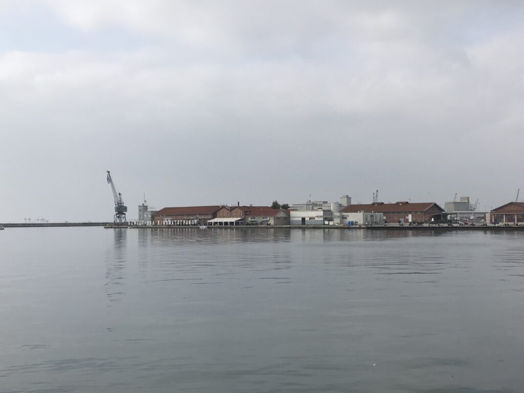 An der Uferpromenade entlang ging es zum weißen Turm, dem Wahrzeichen der Stadt. Hier an der Uferpromenade gibt es auch den gestern schon entdeckten Fahrradweg, einige interessante Gebäude und am Platz dann eine Touri-Gallere, die ab und an ausläuft, man muss nur etwas konsumieren um dabei zu sein – wir nicht!