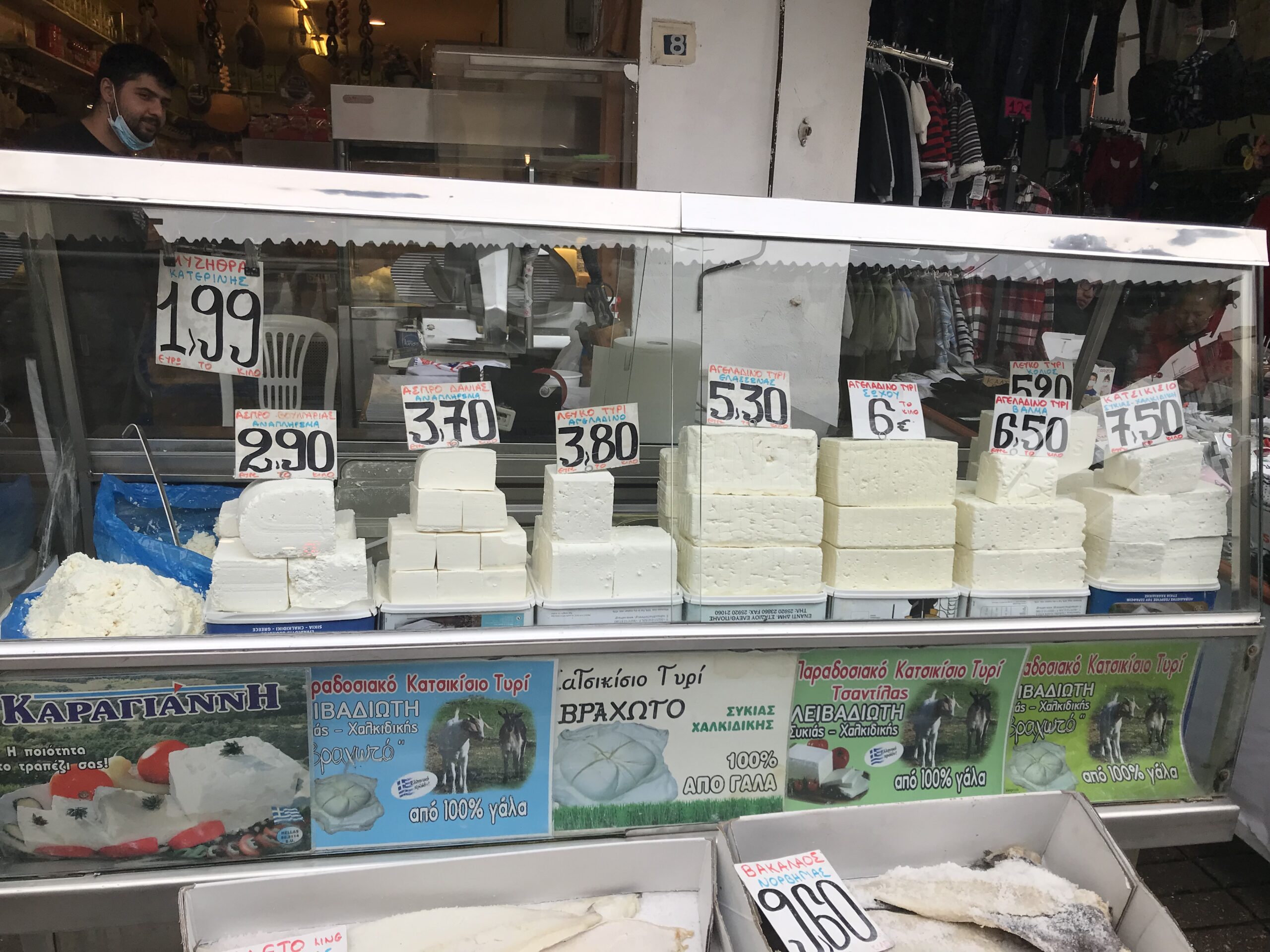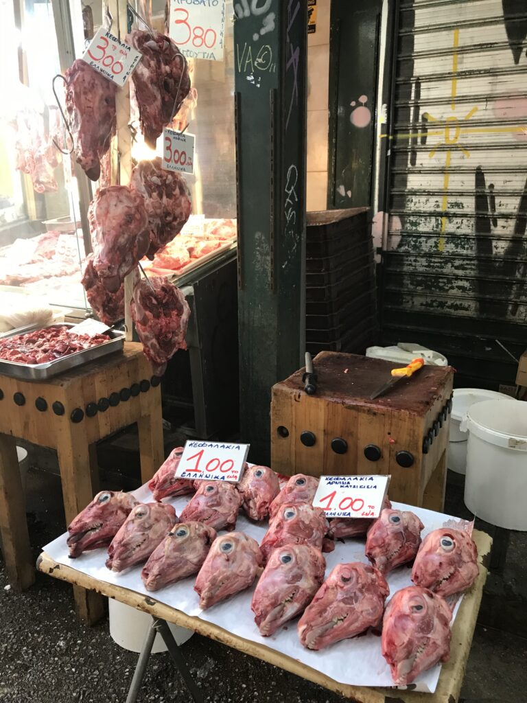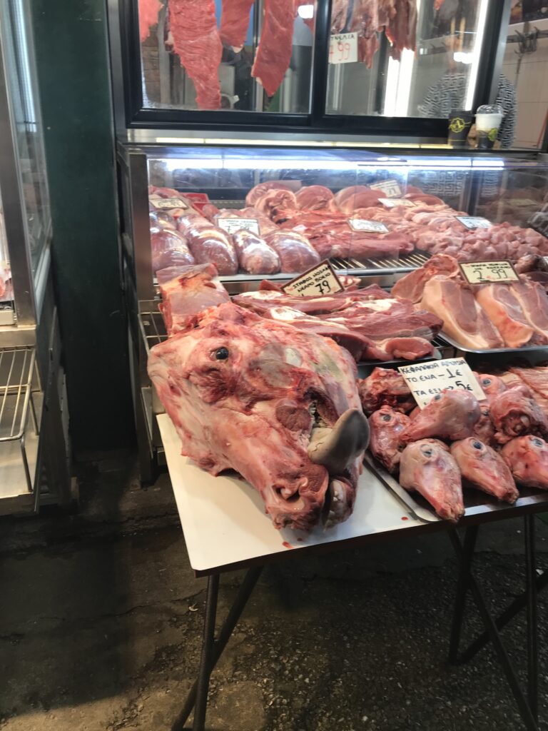 Erstmal war wieder Markt angesagt. Thessalonikis orientalisch anmutende Märkte sollen laut Reiseführer die schönsten in ganz Griechenland sein. Es ist wirklich interessant anzusehen, es ist ein sehr weitläufiges Gebiet – gut so recht orientalisch fand ich es jetzt aber nicht. Interessant ist, wieviele Stoffe und Nähutensilien sie hier anbieten, das Nähen muss noch weit verbreitet sein. Ansonsten eher das gleiche Angebot wie auf anderen Märkten, aber nicht so touristisch, sehr ursprünglich, es kauften die Einheimischen ein, Touristen sieht man jetzt eher selten.